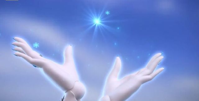 冰公主缓缓抬起双臂,凝聚起她被亲生哥哥给剥夺之后,仅剩的一点冰雪之力,将它们凝于掌心,变为晶蓝色的八角雪花,闭上了眼眸: