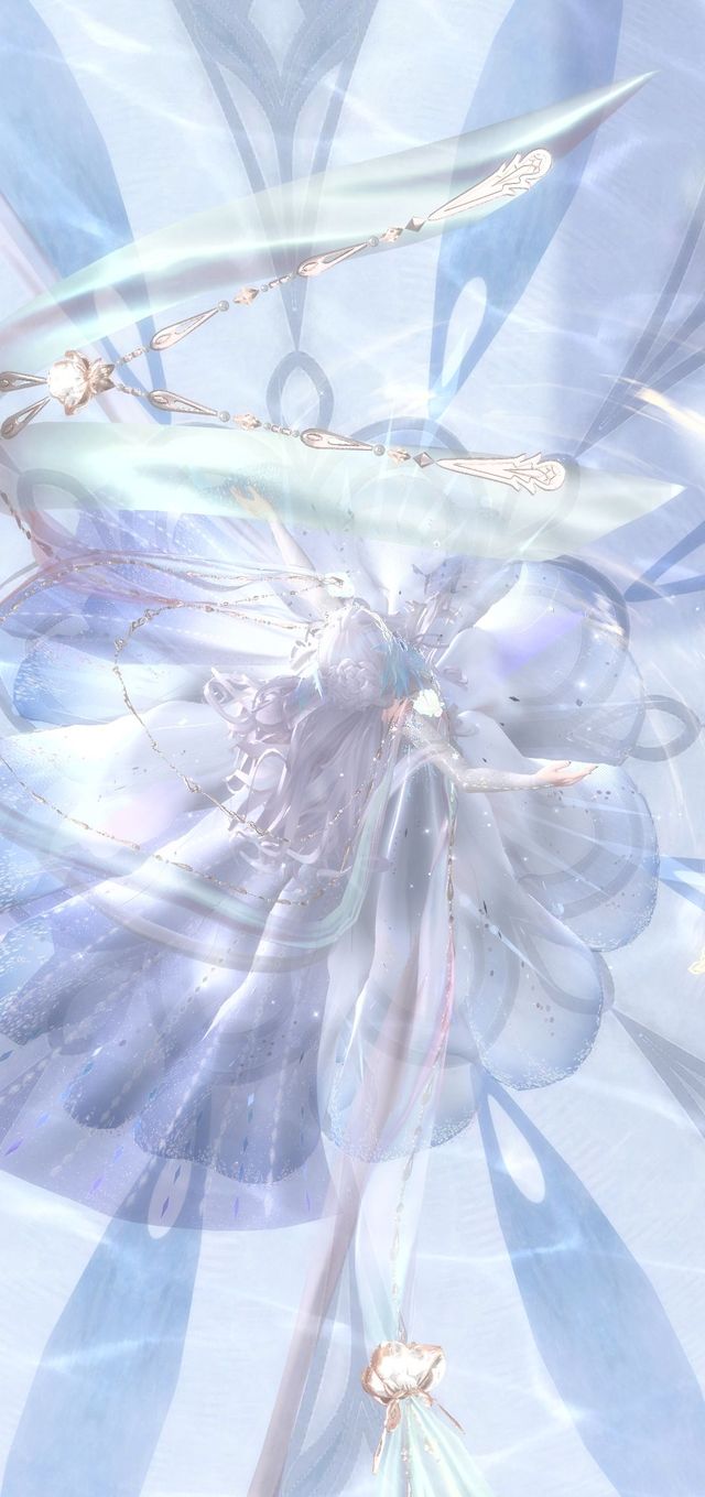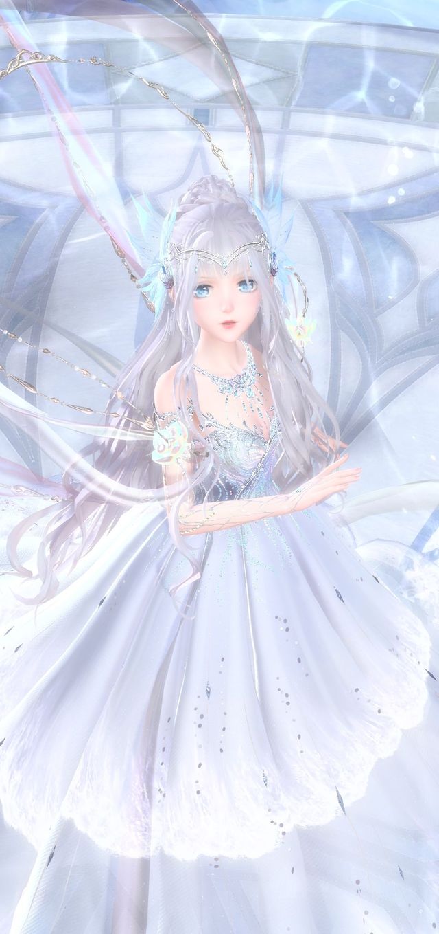 轻盈的雪白长裙如同月光流淌在随风飘荡的水波上,海浪落作裙摆,莹润的珍珠如同透亮的水滴装点在银白色的发间。
