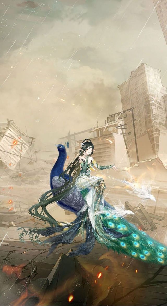 一双兽爪踩在碎裂的瓦砾上,身着碧绿华裙的女神侧坐在体型巨大的灵兽背上,视线落在被半埋在瓦砾之中,浑身焦黑,身上好几处都皮肉翻卷,甚至能窥见白骨的伤口的战士身上,抬手,吹出一口宛若山间薄雾的浅绿神力,头部生长着羽状耳翼,通体莹白,身形修长的精灵龙从雾气中浮出,飞到断壁残垣间,将被深埋在瓦砾之中,奄奄一息的战士救出。
