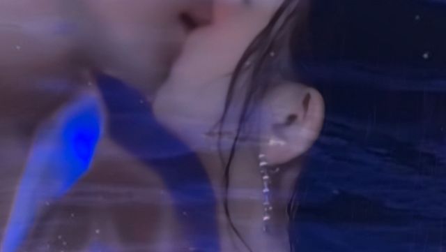 水中你的发丝散开漂浮,鱼尾有弧度力量的摆动