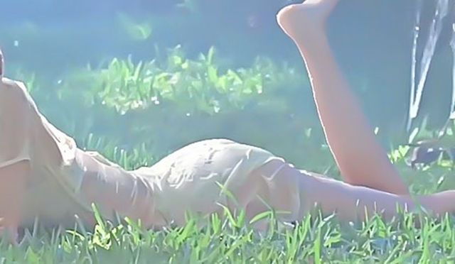 刘耀文坐在你身边,低头看着你慵懒的趴在草地上