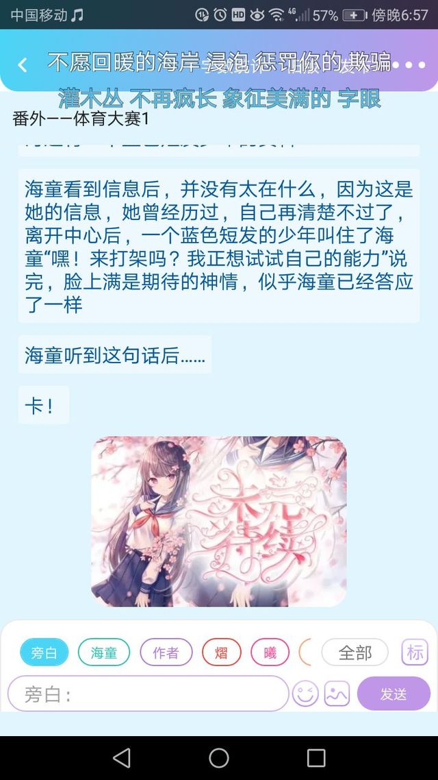曦走到海童身边,伸出手准备拉她起来,把她拉起来后,她们随便找了一个位置,聊了起来(?