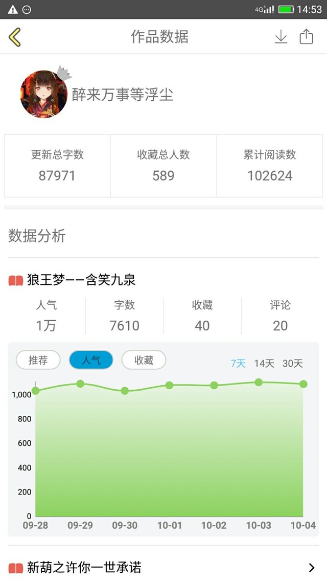 浮尘阳焰:还有呢……我新开的书——《狼王梦之含笑九泉》的人气也挺不错的!