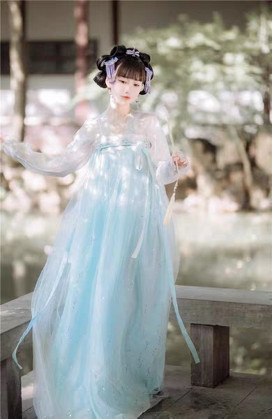 歌声慢慢变得庄重,台上,四个妙龄少女,身着淡蓝色衣衫,慢慢走了出来。