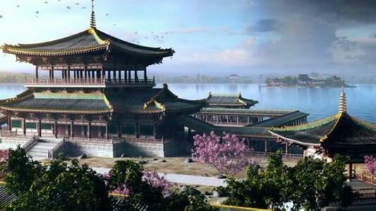 东北角城墙旁有一楼,名唤九五阁,高七百丈,上接云天,下接护城河水,是当今皇帝特为皇后兴建。