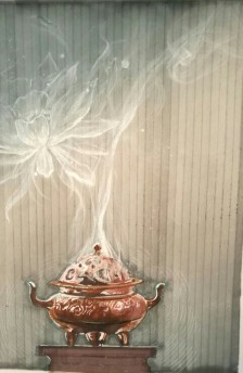 室内香炉烟波袅袅,空气中弥漫了檀木香的味道。
