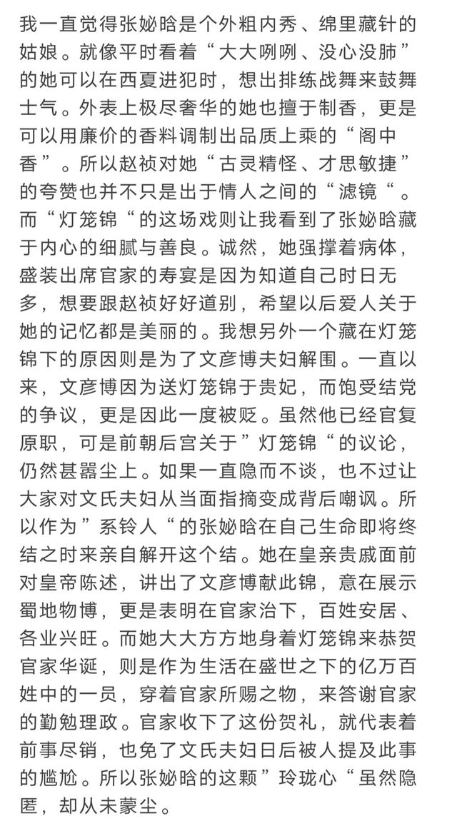 作者:我一直觉得,男女之欲这方面,贵妃可能是后宫中最合赵祯意的~ 这部剧里,祯成二人特别有CP感,非常有荷尔蒙、性张力(这也是两位演员的演技+颜值所赋予给角色的玄妙加成), 目前为止,这剧里,最色气的镜头都是这两人之间的,嗯,色气担当 (嗯......夏贾是尺度担当,哈~)