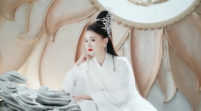 莫舒烈焰红唇,高高的发髻点衬的有种华贵的意思。