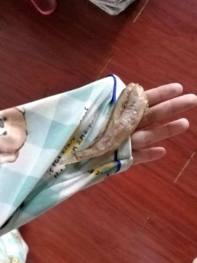 麻辣红茶包:今天开一包小鱼干吃,发现里面有一条这么大的