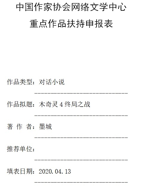 (墨城)作者:说到做到,这应该是全国第一部申报国家推荐网络文学作品的对话型小说吧?