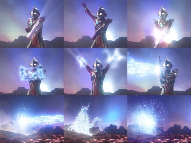 迪迦抓住机会一拳打向了加坦杰厄,随后补上光线
