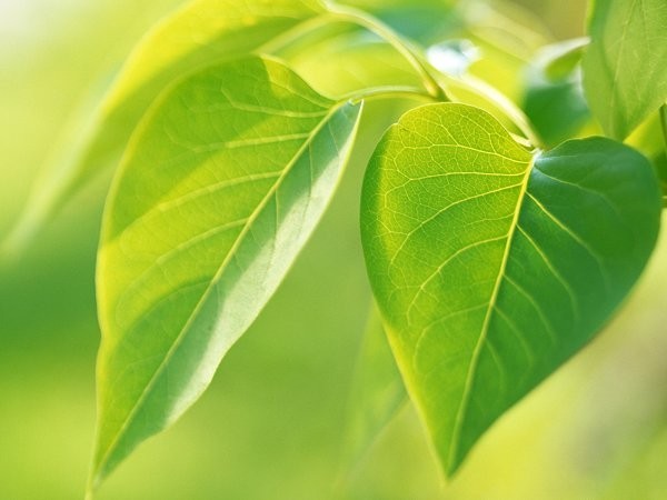 植物的叶子。因为叶绿素进行光合作用,主要吸收红、橙、黄、蓝、紫等色光,而不需要绿光,所以,叶子反射绿光,我们看见叶子就是绿色。