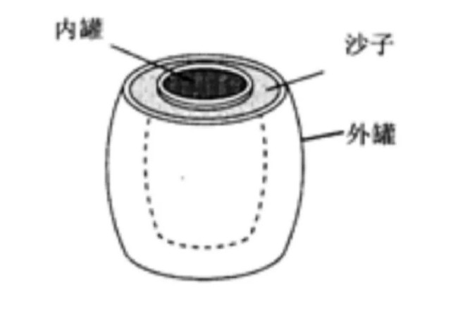 沙漠冰箱其实就是“罐中罐”。它是由一个内罐和一个外罐组成,两罐之间填上潮湿的沙子。使用时将食物和饮料放在内罐,罐口盖上湿布,然后放在干燥、通风的地方,并经常在两罐之间的沙子上洒些水,因为水蒸发会带走一些热量。这样就可以保持15℃到20℃的低温,使食物保存较长的时间。