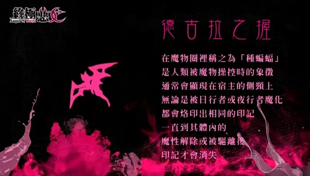 一群穿着黑色斗篷的人坐在地上听着黑衣男子讲话,其中有两个穿着马卡龙校服的女生,那个黑衣男子一身魔物的气息,黑衣男子脖子上有个蝙蝠形状印记,那是被魔物附身之后就会出现的印记,叫做「德古拉之握」