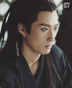 在身后的一个小亭子里,蓝曦臣一身黑衣,遮着眼睛。因为失去心智,所以呆滞地看着绿绮琴。