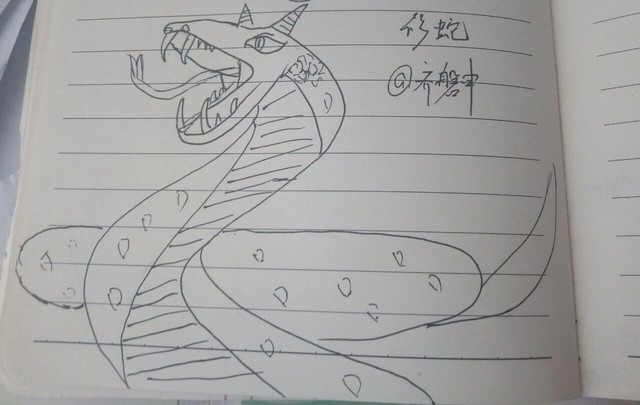 “《山海经》记载:‘大体如蛇,但有四翼,发磐磐之音,其名曰鸣蛇。’”