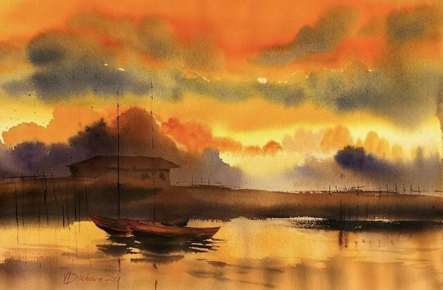 维内塔·多切娃(Veneta Docheva)1974年出生于保加利亚,在作品中完美地诠释了水彩艺术的真实魅力,在简单的光影水彩作品之中,交织着水与色独自韵律。画面是通过水彩的水韵气息为媒介,表现出水彩的交织和深化,仿佛可以将水色的意境表达得深刻且立体。水彩画面浮现于纸面之上,拥有别样的艺术美感,所有的自然之美尽收眼底,在风景之中表现出独有的艺术魅力。