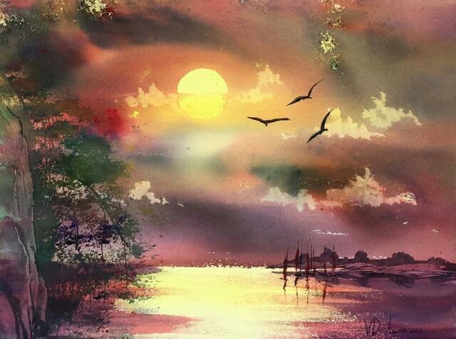 “意境”是水彩作品中别样的艺术,有感在Veneta Docheva的水彩画面之中萦绕,依然拥有那超强的美感画面。好似美丽的诗意,美丽的水彩画是作者与自然融会贯通而形成的具有深意和情感的表达。水色在一束光与色彩之间形成了一种交融,看似水彩的风景所呈现的画面好似中国画般的气韵之美,又具有西方画派的光色之美,水彩画面则拥有气韵与色彩的交织与融合,形成立体的体现。