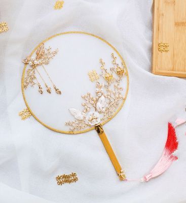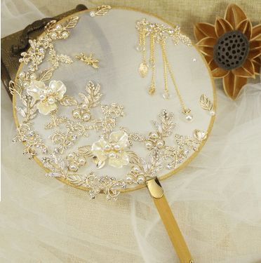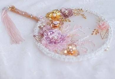 天秤座--珍珠镶嵌刺绣捧花扇