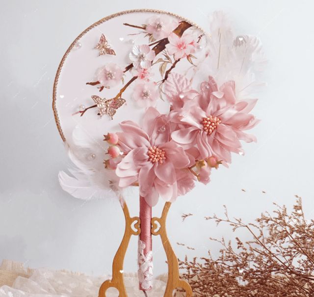 双鱼座--淡雅粉ins风格的捧花扇