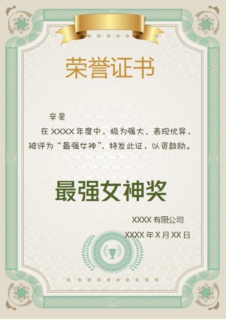 小雨:先发我们女主辛灵的奖状