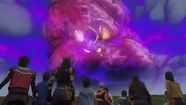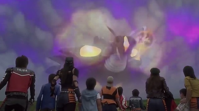 天空上从芝顿那儿发射的火球飞往来了,武藏立即变身,殷音则使出防护罩