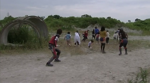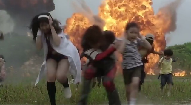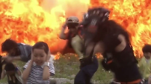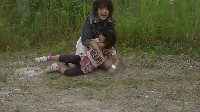 这时,大贺发现奏太还在后面蹲着,看来是惊吓过度,脚不听使唤。大贺连忙跑过去,抱起了他。