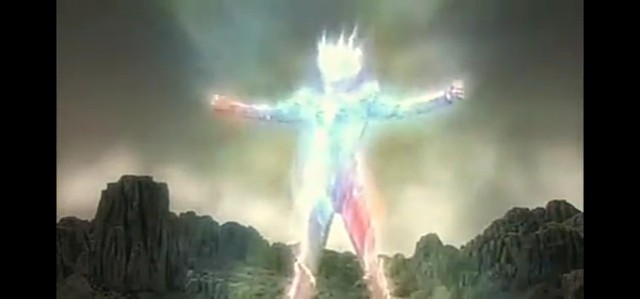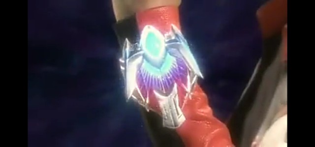 三人斗志昂扬地说着,举起手中的变身器望着天上的究极杰顿。接着,赛罗手镯也发光,又变成另一个形态