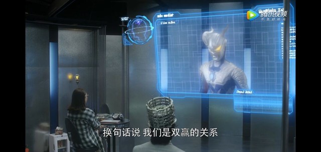 随后为了方便跟赛罗交流,莱姆想了个办法,给令人头上套了个仪器,这样赛罗就显现在屏幕里了。