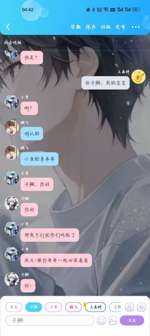 晓宇:小鱼?[愣了一下]子文那家伙[坐下]