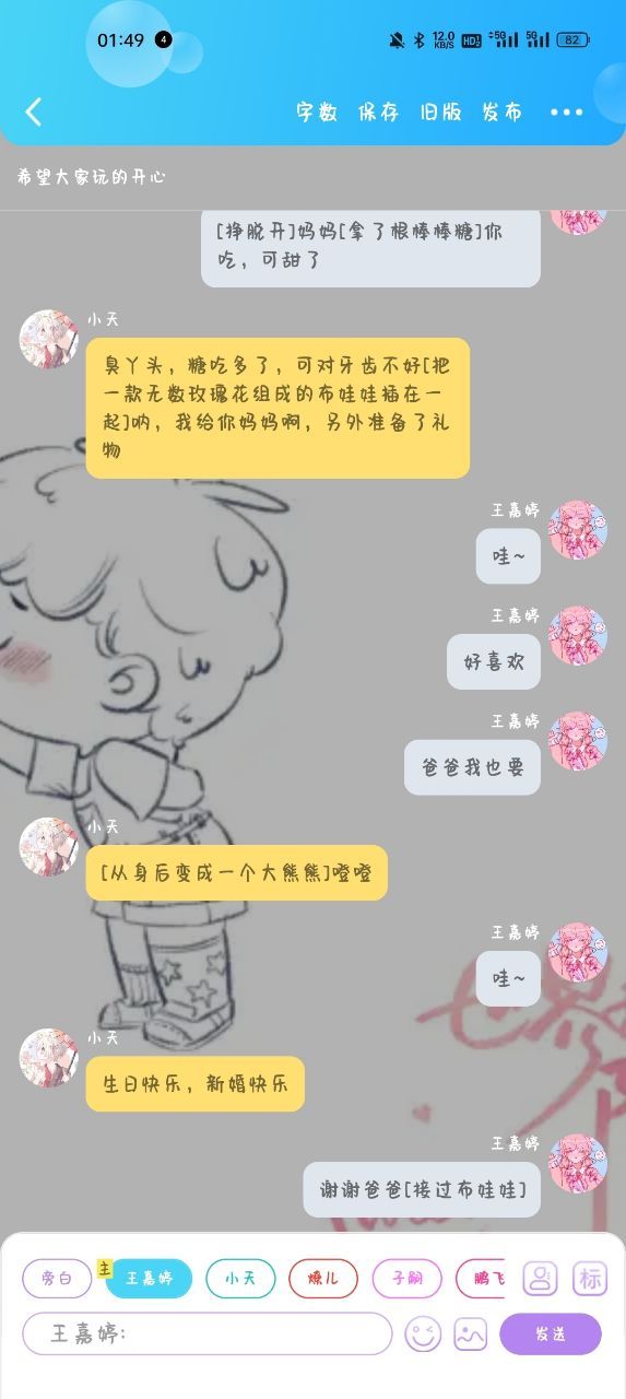 小天:[拿走娃娃]吃饭