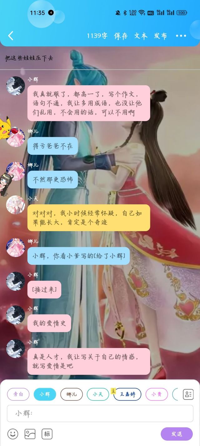 小辉:[接过来]我的爱情史[结果看完才知道,除了变化名称,在你我他之间换个字,剩下的。完全就是抄袭]