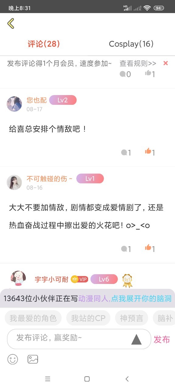 宇宇:本书完结的话,短的话应该在50章左右,长的话90章差不多