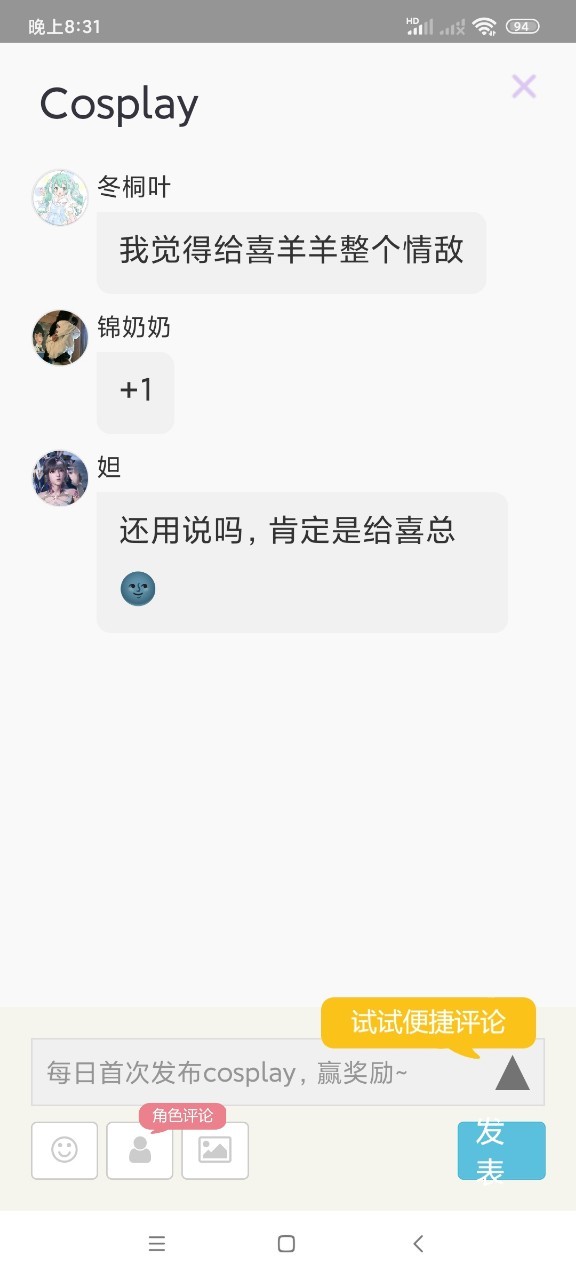宇宇:评论区都是给喜羊羊整个cp诶