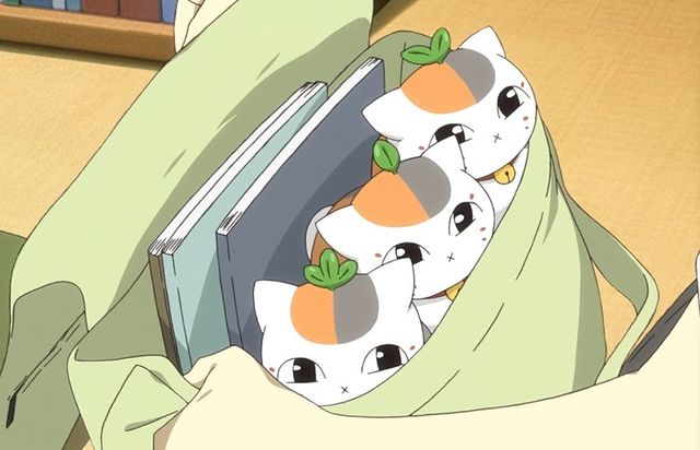 已经看不到妖怪的夏目和只能看到模糊影子的田沼要是看不到笑脸神明,也看不到猫咪手中的桃花枝,只看到了猫咪从三筱的肩上飘了下来被什么拖着似的半趴的虚浮在空气中,猫咪神情很是享受就像被顺毛的抚摸。