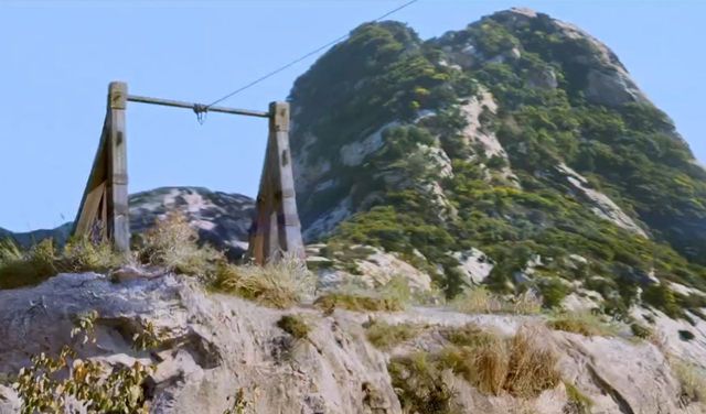 大家这才吃惊的发现,山与山之间竟然还真的连着一条绳索!