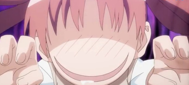 小姑娘一脸邪恶的微笑用手捧着你的小脸,用一种非常变态的眼神专注的看着你,像是欣赏一件宝贝一样