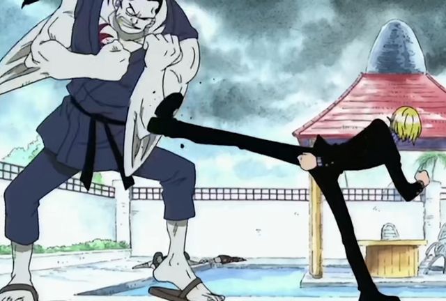 可可一跳就轻松躲开,下一秒山治就结结实实的给了克罗欧比一脚。
