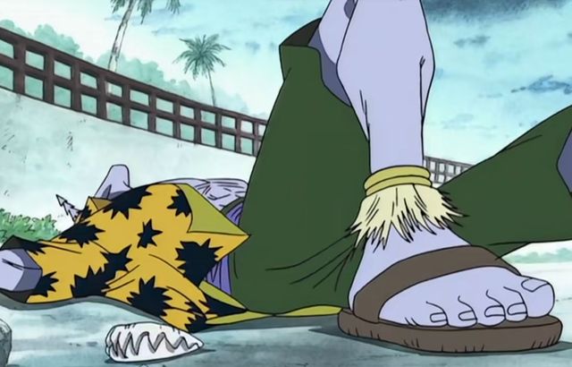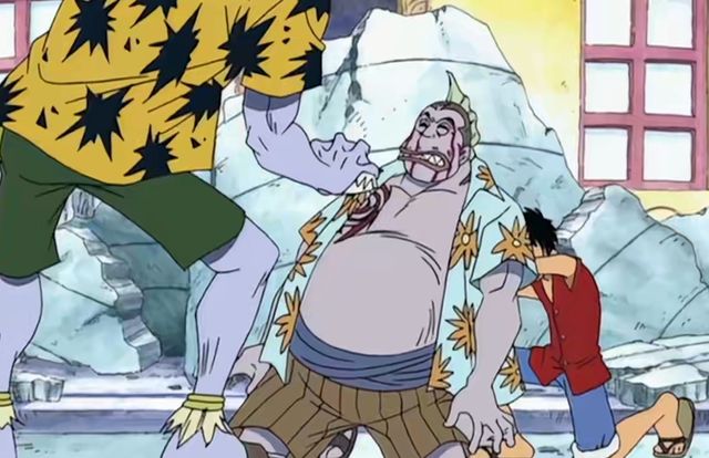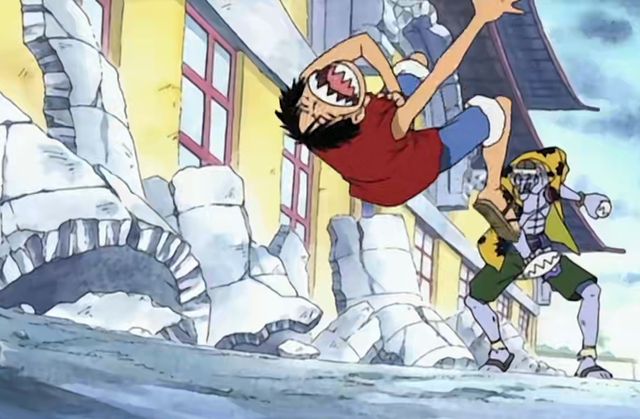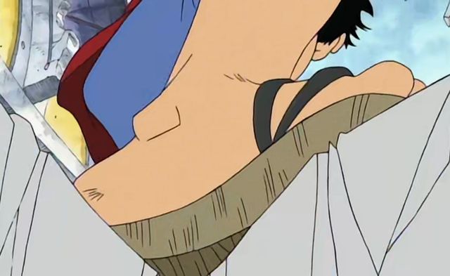 抓住时机,路飞脚下一顿,站稳之后顺势给了阿龙一脚。