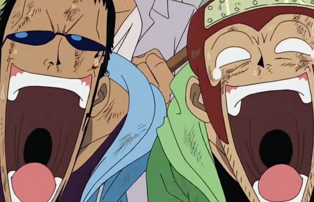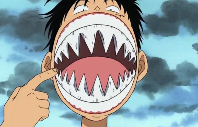 路飞盯着阿龙的牙齿许久,然后左手撑着自己的下巴,乐得开怀。