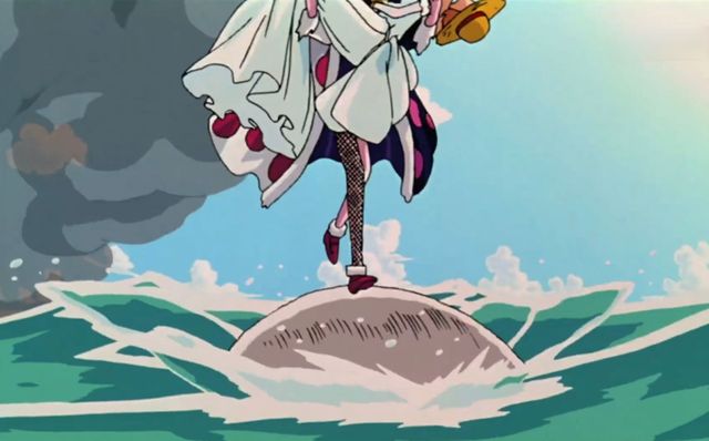 可可用自己的能力保护着身边的娜美,但是却没能保护船,结果,这船被炸毁了。可可的能力还是没有完全恢复,也不可能从水里出来,娜美只好背着她,而索隆这边照顾着同样是恶魔果实能力者路飞。但是好巧不巧,那女人直接抱起娜美,把可可给抛了出去,由山治接住。