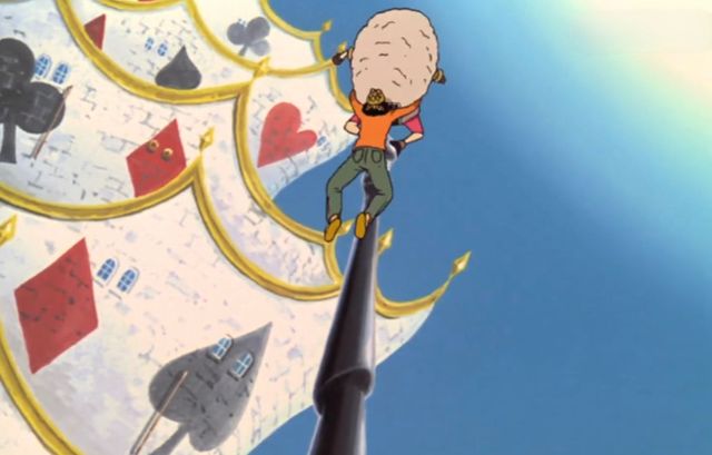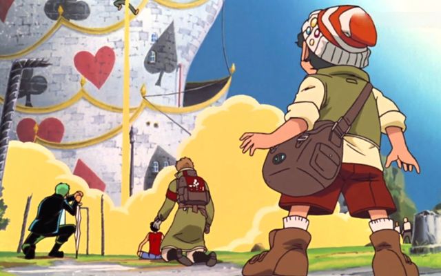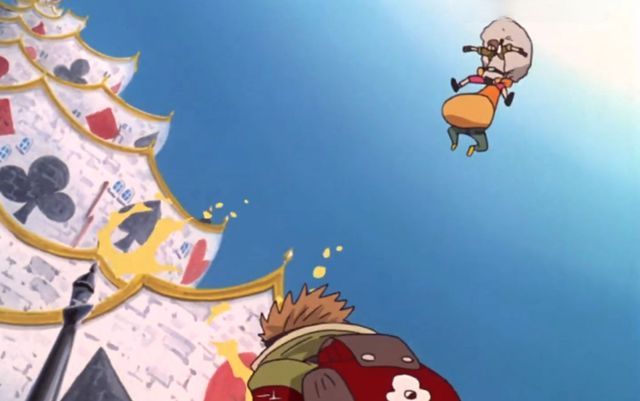 路飞带头,索隆跟可可在第二位,身后有博洛德跟阿基思,大家就这么朝着扑克牌城堡冲了过去。而那个史康克一号喷着自己的气体,就把乌索普带去了山治的所在地。