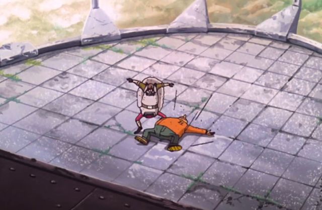 史康克非常生气,自己本来能抓住他们所有人的,可是却偏偏被这个家伙给打乱了计划,于是他气的踢了乌索普一脚。