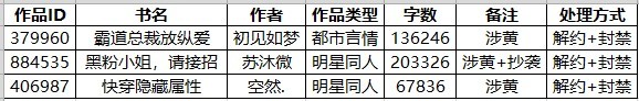 话本城管:全站通告,以下三本签约作品严重涉黄及抄袭,已被解除签约并永久封禁!