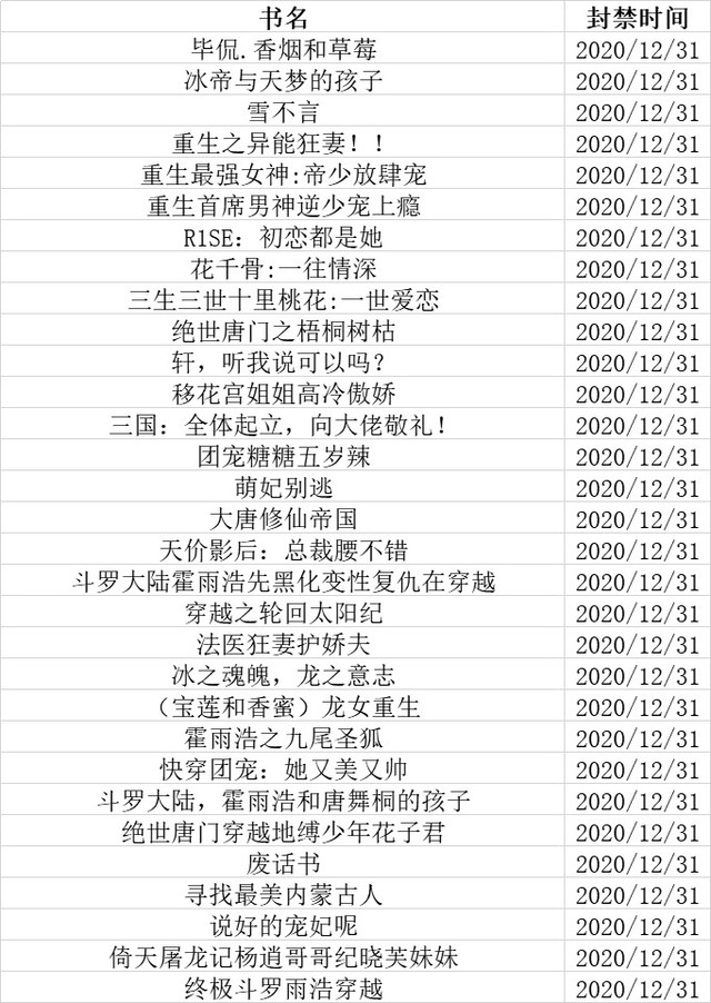 12月31日封禁书单