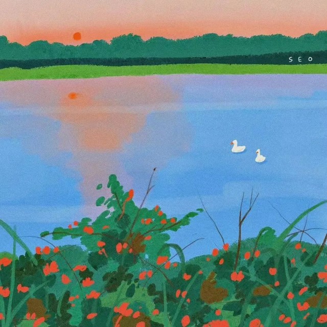 12.野玫瑰盛开在仲夏荒野,漫无边际。