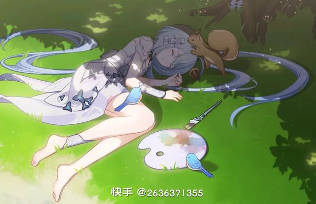 温迪和知闲买完酒后来到了一片草地上就可以格蕾修在睡觉