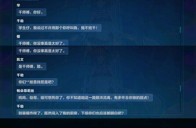 千劫:. . . 我只说一遍,给我记好了,别用那个称呼叫我,我不姓千!