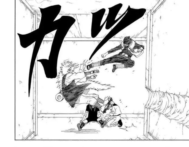 自来也转过身,看着那道人影,还没来得及开口,就被一脚踢中。