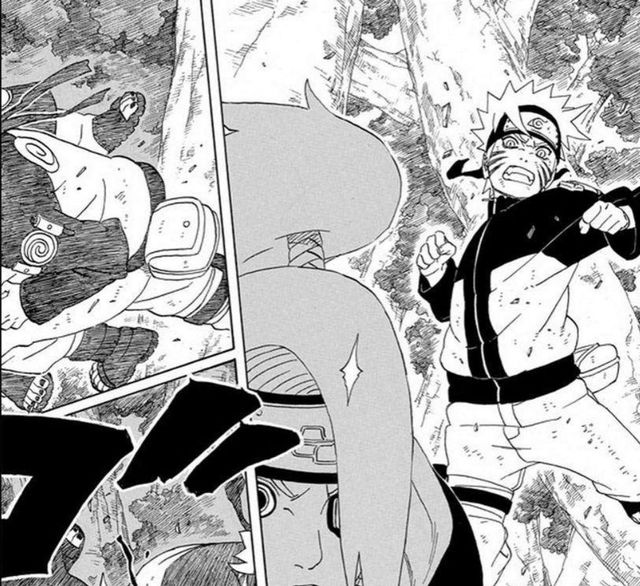 果不其然,伴随着话音刚落,他听到耳边突然响起了破空声。鸣人骤然之间出现在他的身后,重重的给了他一拳,将其完全击飞。